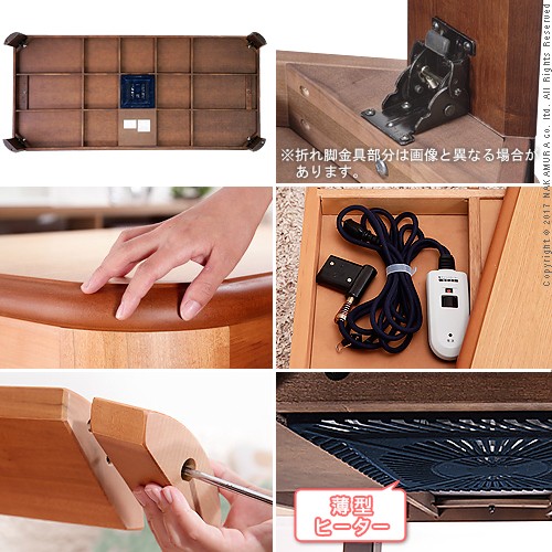 使わないときは折畳んですき間へ収納(厚さ15cm) 便利な継ぎ脚付(高さ5cm) 600W薄型石英管ヒーター(手元コントローラー式) *サイズ(cm):幅210x奥行100x高さ約40・約34kg *カラー:ブラウン、ナチュラル *材質:天板-天然木化粧繊維板(楢) *一部組立品(脚部) ■送料無料 ■この商品は代引きできません。